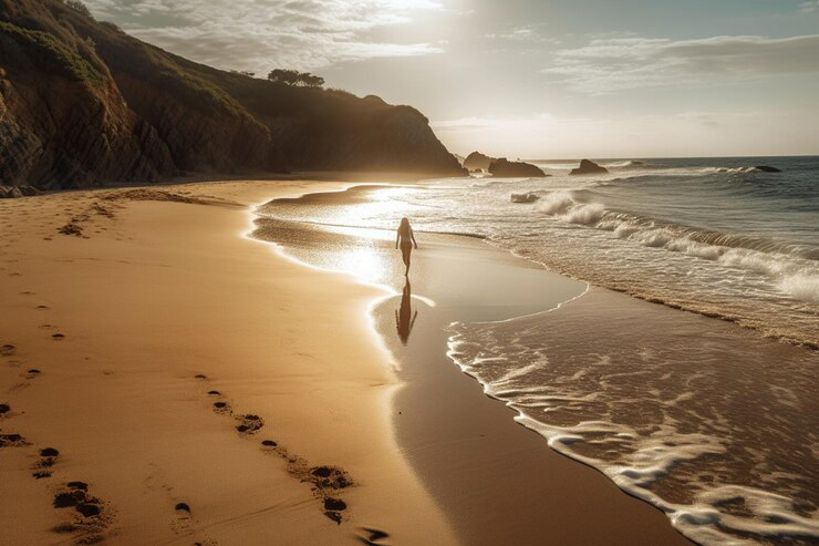 The chatty ripples still play with my feet and tell me secrets from the bottom of the sea. A shimmering thin blanket floats over the waves, embroidered by the rising sun in the freshness of this morning. The soft, enveloping mist moistens and perfumes my hair, awakening a sublime sensuality in me.